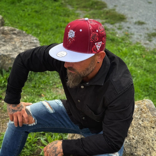 Gorra Snapback de rosas - Estampado de rosas rojas/Blanco